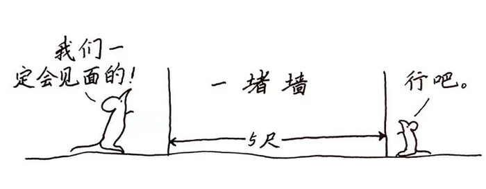 一堵墙,厚五尺(约1.2米),两边各有一耗子。它们相向挖洞,而且每天都是匀速运动。