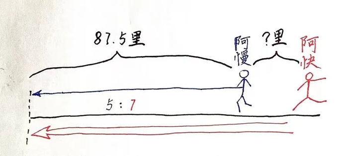 阿慢先跑,阿快再追,锲而不舍地狂奔87里零150步(300步=1里)才撵上。请问阿慢先跑的那段跑了多远?