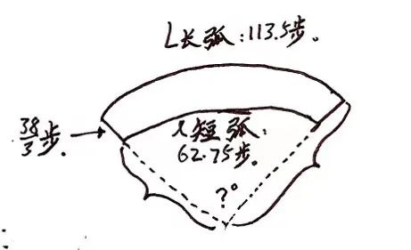 有一块环状的田地,但未必是一整圈。它的内弧长62.75步,外弧长113.5步,两条弧线间距12+2/3步。请问这块田地一共多大?