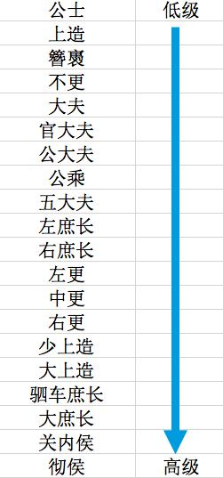 吃饭的时候,爵位每提高n级,出的钱是1/(n+1)。比如最低级的“公士”要花6元钱的话,“不更”就只花3元,“簪裊”花2元,“上造”就只用花1.5元……