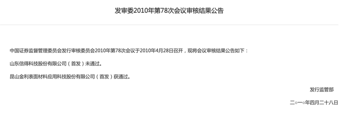 时隔两年之后,信得科技再次向资本市场发起冲刺,但是在2010年第78次发审委会议中,信得科技的首发申请再次未获通过。