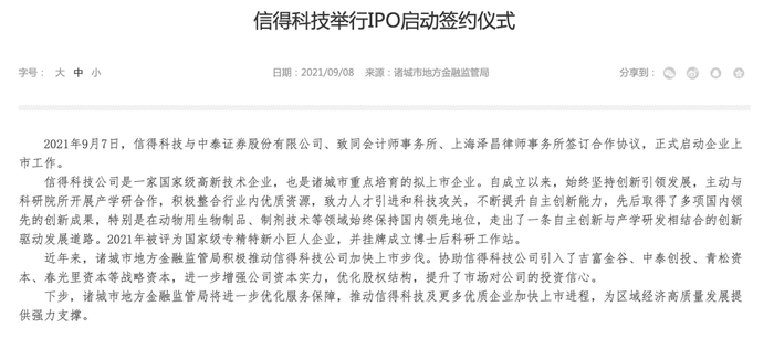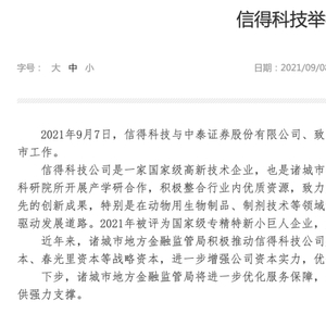 值得注意的是,就在去年9月7日,信得科技与中泰证券股份有限公司、致同会计师事务所、上海泽昌律师事务所签订合作协议,正式启动企业上市工作。
