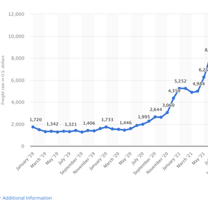终端消费者如此,企业和电商卖家更是苦不堪言。港口拥堵、运输延迟、费用上涨,货运成本吃光了利润。以集装箱价格为例,自2020年以来,全球货柜价格水涨船高,从不到2000美元攀升至最高超过10000美元,尽管现在有所回落,但仍徘徊在8000美元以上。