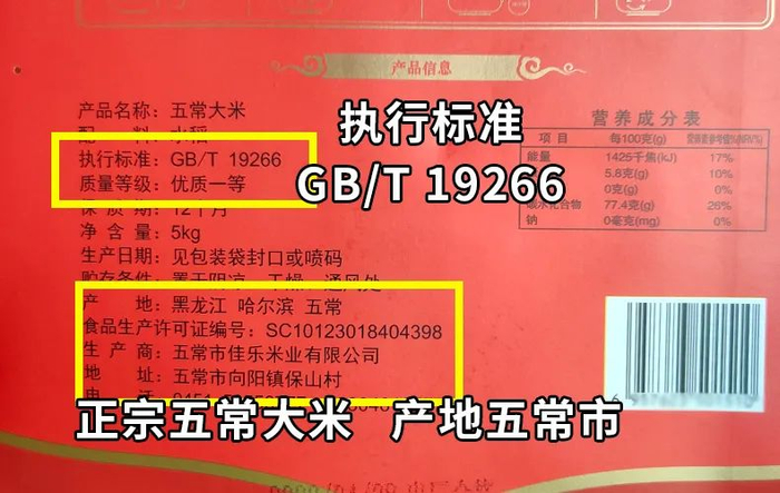 五常大米有一个独一无二金字招牌,就是产品包装上的执行标准,GB/T 19266《地理标志产品五常大米》,这个标准是由黑龙江省有关部门明确规定的,只有产自五常大米的规定产区,才能执行使用标准GB/T19266。