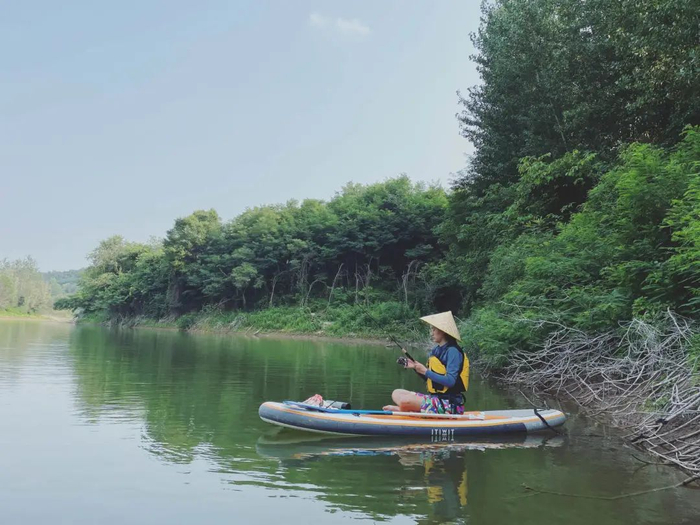 乐璐璐喜欢在桨板上玩路亚钓,任由桨板飘到水域最中间,看到跟小腿一样长的鱼从桨板旁边游过,虽然钓不到那些鱼,但可以钓河蚌,也是一种野趣。