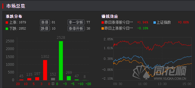 3、两市共1679家上涨,2852家下跌;涨停81家,跌停10家;