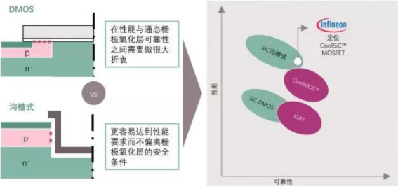 在落地到利用第三代半导体材料去解决具体问题时,程文涛告诉OFweek维科网·电子工程,英飞凌的碳化硅器件所采用的沟槽式结构解决了大多数功率开关器件的可靠性问题。