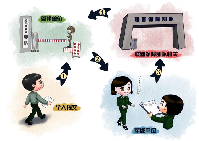 离退休干部管理单位收集整理审定相关材料,逐级报联勤保障部队机关审核;材料审核通过后,加盖相关业务部门印章后返回各单位,转交联勤保障部队驻各省(市、自治区)退役干部移交联络员,等待军地联审材料。