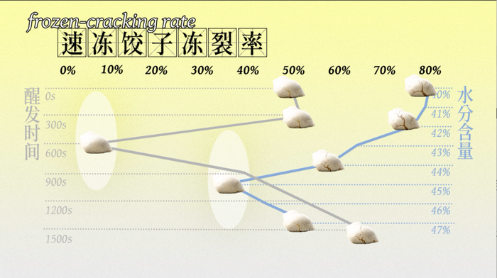 不过,即便控制了冰晶,如果饺子皮的延展不够,速冻过程中饺子还是会裂开。这就需要从源头解决问题。