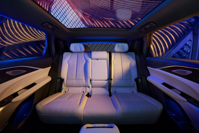 锐歌高度还原了概念车的设计元素,前卫的造型、优雅的雕塑艺术、流畅的线条汇聚在一起,凸显灵动车姿。前脸部分,1.8米超大尺寸黑晶光曜格栅是最具表现力的设计元素之一,联袂流光星雨直列式LED大灯和流光飞翼LED尾灯,呈现出富有未来感的感官体验。1.83平方米超大全景玻璃穹顶延伸至车顶扰流板,实现了设计美学和空气动力学性能的完美融合。