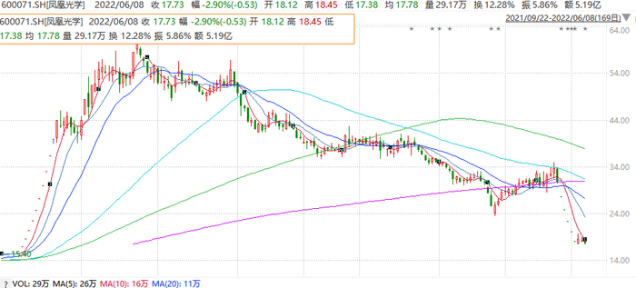 5月28日,凤凰光学(600071.SH)发布了关于终止重大资产重组的公告,随后公司股价连续5个跌停,截至6月8日收盘公司股价为17.73元,较去年最高价已跌超70%,包括社保基金在内的众多投资者被严重套牢。