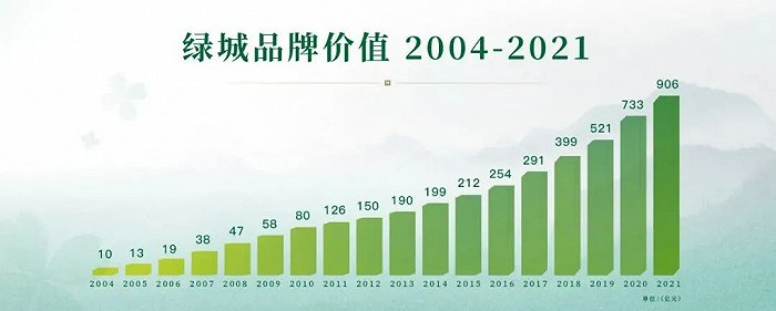 自2004年以来,绿城中国企业品牌价值由9.52亿元提升至906亿元,增幅90余倍。