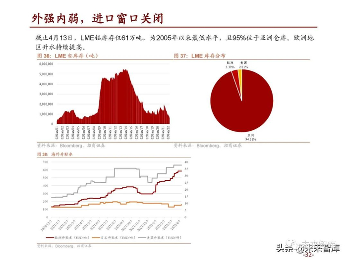 截止4月13日,LME铝库存仅61万吨,为2005年以来最低水平,而隐性库存则多为常备库存, 大部分也无法取出使用。