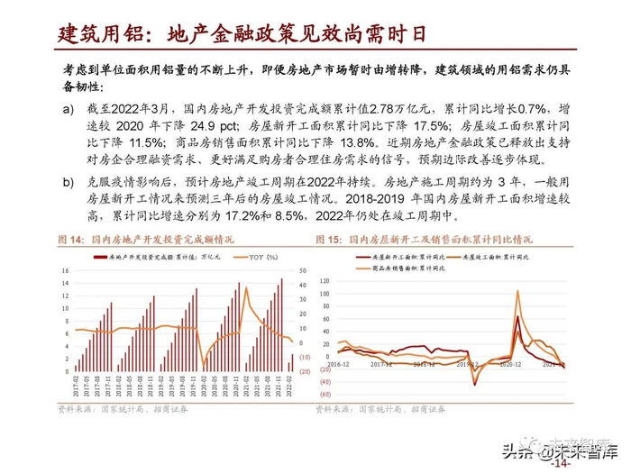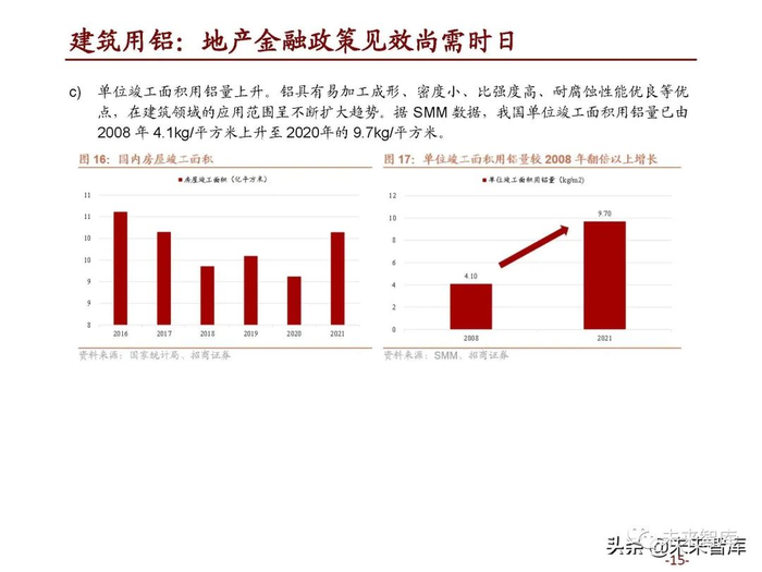 考虑到单位面积用铝量的不断上升,即便房地产市场暂时由增转降,建筑领域的用铝需求仍具 备韧性:
