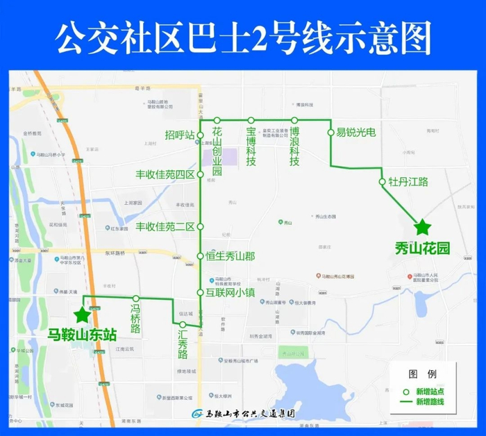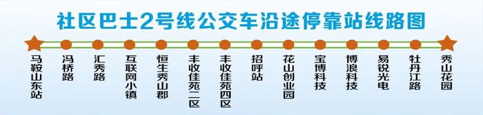 牡丹江路、易锐光电、博浪科技、宝博科技、花山创业园、招呼站、丰收佳苑四区、丰收佳苑二区、恒生秀山郡、互联网镇、汇秀路和冯桥路