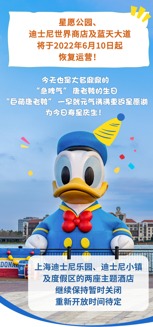 新京报讯 据上海迪士尼度假区发布微信公众号消息,星愿公园、迪士尼世界商店及蓝天大道将于6月10日起恢复运营,上海迪士尼乐园、迪士尼小镇及度假区的两座主题酒店继续保持暂时关闭,重新开放时间待定。