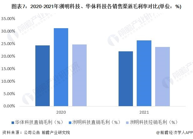 从毛利率来看,2019-2021年,洲明科技智能照明业务毛利率在29-35%左右,2021年为29.03%;2019-2021年华体科技智慧灯杆业务毛利率在25-36%之间,2021年为25.32%,整体低于洲明科技。