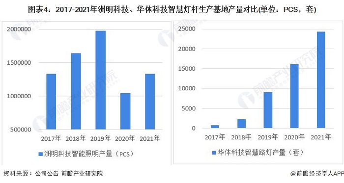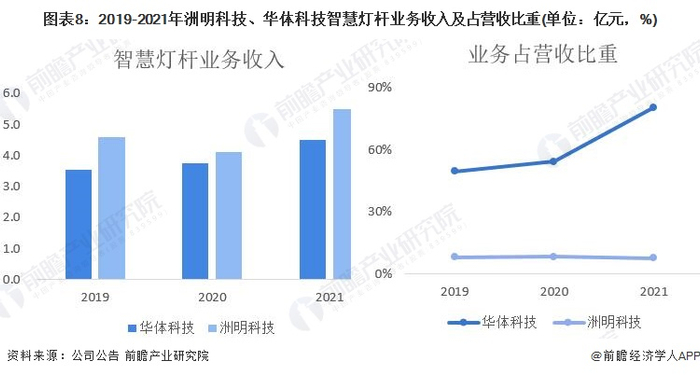 注:洲明科技智慧灯杆业务收入数据采用智能照明的口径,华体科技数据采用产品研发制造的口径