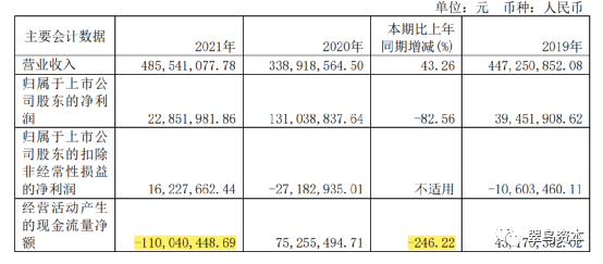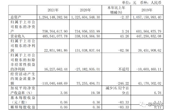 2021年年报显示:公司实现营业总收入4.86亿元,同比增长43.26%;归母净利润2285.2万元,同比下降82.56%;扣非净利润1622.77万元,同比扭亏。