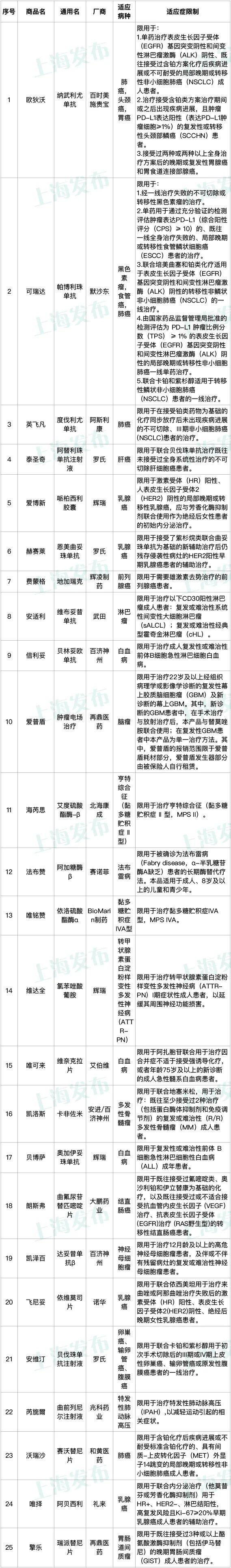 A:25种国内特定高额药品清单如下: