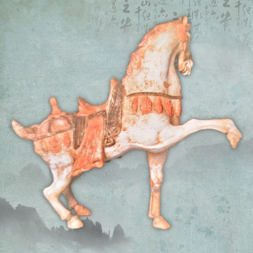这件马俑全身红、黑色相间,在唐代彩陶中实属罕见,是文献中“龙种神驹,四蹄踏雪”的艺术再现。马头低俯,作嘶鸣状,体态雄健,气势雄伟,华丽的装饰显得醒目明快,处处都透出一种内在的、真实的美,是唐代彩绘马中不可多得的精品。
