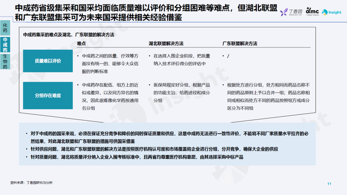 尽管中成药省级集采和国采均面临质量难以评价和分组困难等难点,但湖北和广东集采汲取到的经验可为未来国采提供重要参考。