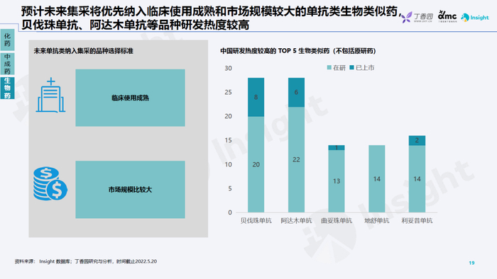 单抗类生物药在省级集采中亦有突破,广东 11 省联盟首次把利妥昔单抗纳入省级集采中,最终信达生物因价格最低获得拟中选资格,罗氏和复宏汉霖获得拟备选资格。预计未来集采将优先纳入临床使用成熟和市场规模较大的单抗类生物类似药,如贝伐珠单抗、阿达木单抗等。