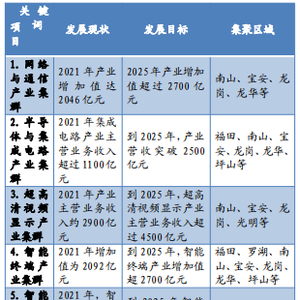深圳市网络与通信产业具备良好产业基础,2021年网络与通信产业增加值达2046亿元,到2025年,网络与通信产业增加值超过2700亿元,专精特新企业数量倍增,关键环节实现突破。