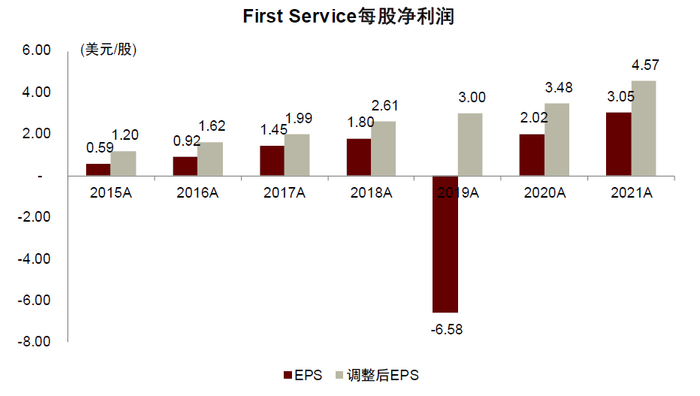 图表40:2015-2021年First Service调整后EPS复合增速达到25%
