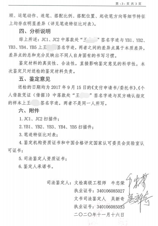 司法鉴定:签名笔迹“非同一人所写”