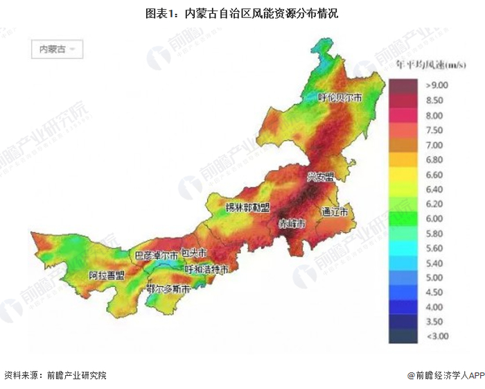 内蒙古地区风能资源非常丰富,在全区118.3万平方公里的土地上,风能总储量达到8.98万千瓦,风能技术可开发利用量为1.5亿千瓦,占全国可利用风能储量的40%。内蒙古风速的季节变化和日变化基本上与生产和生活用电规律相吻合,且地域辽阔,人口稀少,大部分地区为平坦的草场,十分适宜建设大型风电场。