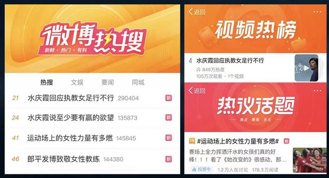 “改变”也收到了效果。从预告到正片上线的48小时里,《她改变的》水庆霞篇连续4次冲上微博自然话题热搜,话题阅读量达到6亿。已“退休”的前中国女排主教练郎平罕见发博支持这支短片,“致敬在体育战线上所有勇于接受挑战的女性教练”。