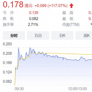 6月9日,号称“烘焙第一股”的克莉丝汀(01210.HK)盘中一度暴涨超200%,截至收盘报0.178港元/股,上涨117.07%,换手率2.71%,交易金额599.30万,总市值约为1.80亿港元。