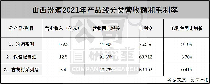 国金证券的研报称,2021 年汾酒实现营收 179.2 亿元(+41.9%),销量为 12.9 万千升(+28.5%),测算价增 10.4%,主要系产品结构持续升级。22Q1 汾酒实现营收 98.7 亿元(+44.4%),预计青花占比由 21 年的 35%进一步提升至 40%左右。