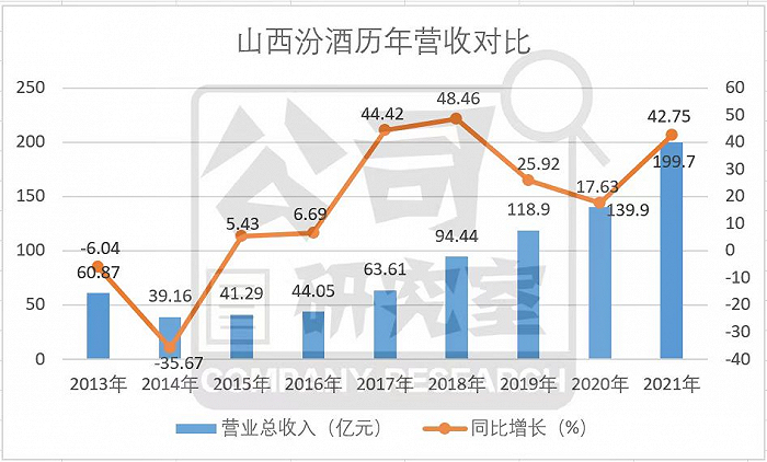 由于汾酒与洋河快速成长的路径高度相似,因此,人们有理由担心:烧钱出圈后,山西汾酒的营收增速会不会也出现停滞,继而重蹈洋河当年覆辙?