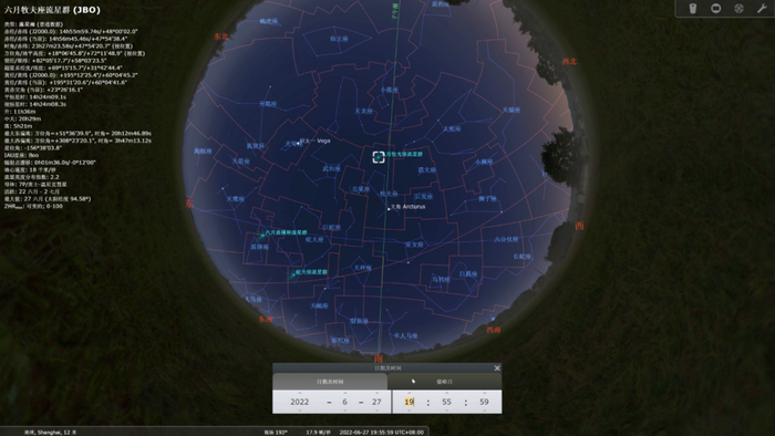 六月牧夫座流星雨辐射点位置(stellarium模拟)