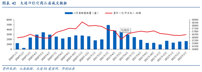 2016年起楼市逐渐回暖,2021年受限购政策影响,商品房成交量下滑。2014年9月开始,政策开始转向相对宽松,从而也推动了大连房地产市场从低迷走向辉煌。得益于婚房、二胎房以及学区房等刚性需求的释放,大连房地产市场2016年企稳回升,稳中向好,商品房销售市场回暖,房地产去库存效果明显。2021年受去杠杆、信贷紧缩、融资渠道受阻,销售低迷等影响,房企普遍面临较大资金压力。受信贷紧缩及大连扩大限售区域、延长限售时间的影响,2021年8月起商品住宅成交面积同比下滑。2022年2-3月,大连市住宅商品房成交量环比小幅上升。5月大连住建局颁布新政,购买二手房不再限购,二手房成交量显著上涨。6月1日开始全面放开落户条件,包括放开各类人才落户年龄限制、取消积分落户等。