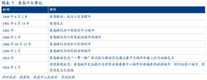 1981年青岛在胶东设立;1949年青岛解放并成为山东省直辖市;1984年3月青岛被列为中国首批沿海开放城市;1986年10月15日,国务院发布的《国务院关于对青岛市实行计划单列的批复》指出:青岛市在国民经济中占有重要地位。为了加快青岛市对外开放的步伐,进一步探索沿海开放港口城市经济体制改革的道路,充分发挥中心城市的作用,决定对青岛市在国家计划中实行单列,赋予其相当于省一级的经济管理权限。1994年2月青岛被列为全国副省级城市。