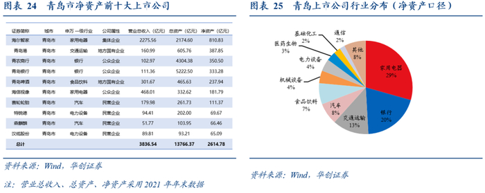 上市公司分布行业兼有银行业、化工、交运、食品饮料等,产业结构相对均衡。以净资产口径划分,青岛上市公司中家用电器行业比重最大。海尔连续12年蝉联全球家电第一品牌,海信电视出货量份额居全球市场第三位,澳柯玛冷柜保持全国同类产品销量第一。