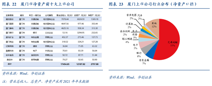 3、厦门:上市公司中交通运输、商业贸易类占比较高