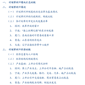 产业结构方面,深圳市以第三产业为主,上市公司中金融、地产占比较高,产业结构体现为“三个为主”:经济增量以新兴产业为主,工业以先进制造业为主,第三产业以现代服务业为主,作为华南地区的金融中心具有特殊地位。宁波市产业多元发展,以民营轻工业、临海重化工、港口贸易为代表,上市公司行业分布银行、交运、汽车、地产占比较高。厦门市产业结构较轻,支柱行业是电子及机械,上市公司中,交通运输类及商业贸易类公司净资产较高。青岛市产业结构均衡,制造业发达,上市公司在银行业、化工、交运、食品饮料等多行业均匀分布。大连市产业结构较重,支柱产业是石油化工和装备制造,上市公司行业分布集中于公用事业、交通运输、汽车、医药生物等领域。