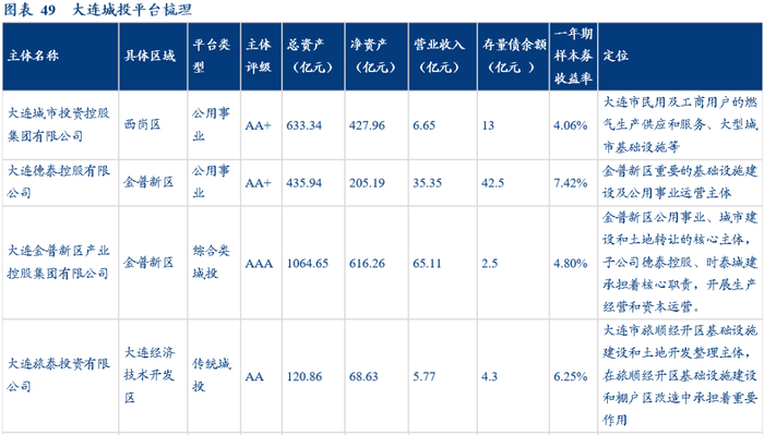 (五)大连:城投平台少,存量债余额不足百亿,收益率五市最高