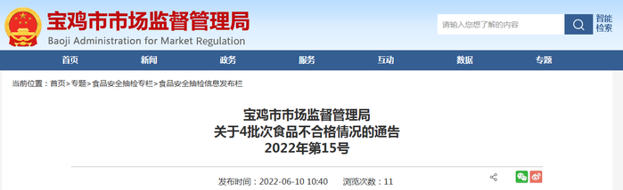 陕西省宝鸡市市场监管局关于4批次食品不合格情况的通告(2022年第15号)