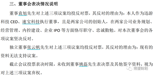 文|恒心来源|博望财经资本市场如战场,没有永远的朋友,只有永远的利益。这句话用在迅游科技(300467.SZ)再恰当不过了。昔日的“盟友”,今日的“敌人”。或许令袁旭万万没有想到的是,3年前的戏码会发生在自己身上,相同的手段,不一样的结果。6月2日,迅游科技发布第三届董事会第三十二次会议决议公告,以“5票同意,2票反对,1票弃权”审议通过了《关于免去袁旭先生公司总裁职务的议案》,同时也通过了《关于聘任吴安敏先生为公司总裁的议案》。一瞬间引爆市场,和大家一样,深交所对此事也“倍感”兴趣,端午节后火速下发关注函,要求迅游科技详细说明罢免总裁袁旭的原因等在内的6个问题。不禁有人会问,区区一次高管变动,为何如此劳师动众?实际上,这并非迅游科技首次出现高管变动。早在2019年9月,袁旭、陈俊作为昔日“盟友”,曾向董事会提议免除时任董事长章建伟的职务,同时提议由袁旭替代。时隔3年,迅游科技创始人“内斗”愈演愈烈。但随着章建伟、袁旭纷纷被“踢出”公司,陈俊或许成为最大“赢家”。但事实真是这样吗?在“内斗”中,迅游科技业绩下滑、股价暴跌。正如互联网行业分析师张书乐表示,“持续内斗会让公司发展战略缺少延续性,公司内部向心力消散、中高层人员无所适从,对于一个目前发展遭遇瓶颈的公司而言,内斗只会消耗公司现有的生命力”。在分割利益这块蛋糕时,“独乐乐”真就比“众乐乐”好吗?01“内斗”升级,昔日总裁、董事长相继出局还记得《中国合伙人》里面佟大为在婚礼上说的那三句忠告吗,其中有一句是“千万别跟最好的朋友合伙开公司”。电影源于生活,这是对迅游科技最好的注解。17年前,抱着对互联网领域的热爱,章建伟、袁旭和陈俊于2008年8月共同创立迅游科技;此后随着英雄联盟、魔兽世界等游戏的火爆,迅游科技头顶着“中国游戏加速第一股”的光环成功于2015年登陆创业板,彼时为确保控制权稳定,三人还在上市前特意签订了《一致行动协议》,共同为迅游科技控股股东、实际控制人。上市时,章建伟担任迅游科技董事长、袁旭担任董事、总裁,陈俊担任董事。“兄弟齐心,其利断金”,凭借网游加速器概念,迅游科技也曾一度出现19个涨停。直至2019年9月,“内斗”正式打响。袁旭、陈俊以“章建伟缺乏对公司所处行业、发展战略、主营业务的理解,长期缺席公司战略制定、经营管理”为由,共同向董事会提议免除章建伟董事长职务,同时提议推举袁旭接任董事长,并最终以“4票同意、3票反对”通过。当然,章建伟也以“袁旭涉嫌故意侵害公司利益的行为及违反忠实义务”等为由提议罢免袁旭总裁职务,并提议由自己兼任公司总裁。但以“1票同意、6票反对”被否决。虽在资本市场上董事长、总裁相互提议罢免对方职务不为稀罕事,但仍引起巨大关注。这场没有“硝烟”的战争最终于2021年落下帷幕,以章建伟出局、离任董事长职务告终。本以为“内斗”剧已结束,不料还有下半场。6月2日,迅游科技公告显示,董事会以“5票同意,2票反对,1票弃权”审议通过免去袁旭总裁职务。对此,袁旭反对的理由为,“本人作为迅游科技CEO、速宝科技执行董事,且是两家公司的创始人,在两家公司业务规划、经营管理、内控建设、企业IPO等方面恪尽职守、忠诚勤勉。对本次董事会的各项议案坚决反对”。独立董事张云帆反对的理由为,“现有的资料无法支持议案”。