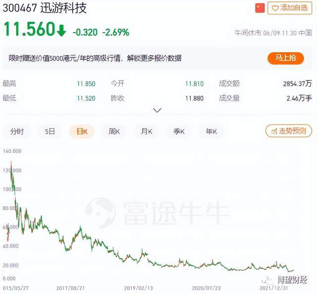 资料来源:Wind。对于迅游科技互联网加速服务业务始终不能做大做强一事,人民网专栏作者张书乐表示,“网游加速器本身作为一个‘外挂’出现,在PC端游时代,针对网络速度不好(包括登录外服)进行加速,提升用户体验。如今,随着固网速度和体验逐步稳定,移动互联网的稳定度甚至超越固网的情况下,网游加速器的生存土壤逐渐收缩,生存空间也不断遭遇挤压,网游加速器从触及用户痛点到连痒点都未必能够触及的尴尬境地下,业绩波动在所难免。”当然,迅游科技也在积极扩大业务版图,尝试多条腿走路。2017年通过资产重组,迅游科技以27亿元收购成都狮之吼科技有限公司(下称“狮之吼”)100%股权,对应形成商誉22.7亿元。狮之吼专注于移动互联网应用软件的研发和推广,根据产品的用途及主要特点可以分为清理类、电池类、网络类、安全类和其他,收入主要来源为在其自有移动软件内向用户展示广告带来的收入。此外,迅游科技还通过募集资金投资使主业延伸至移动客户端软件的研发、发行与运营等领域。但从目前来看,效果甚微。再看盈利能力,2018年至2022年一季度迅游科技实现利润总额分别为-7.79亿元、-11.45亿元、0.61亿元、-0.36亿元和-0.05亿元,除2020年微盈外,其余各年度均亏损,4年间亏损额近20亿元。对于2021年亏损,迅游科技在业绩预告中解释称,主要源于对并购狮之吼形成的商誉计提减值约9700万元。反映在资本市场上,迅游科技股价持续暴跌。截至发稿时,迅游科技股价11.56元/股,较昔日高光时刻的最高价126.77元/股缩水逾九成,此前2022年4月27日最低价9.97元/股,创上市以来新低,目前市值仅23亿元。