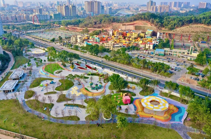 江门儿童公园“梦”主题游乐区依托省级碧道--城央绿廊碧道而建,里面设置了蓝色港湾、童趣台、丛林穿梭、勇者之坡、丛林探险、秋千群岛、漫步云端、天空之城、空间站等各具特色的游乐区域,园区的最大特色在于所有游乐项目都是无动力设备,并且是国内原创大型游乐设备。“沙”主题游乐区设置了幻海滑索、海岛历险、海星沙滩、奇幻沙海等各具特色的游乐区域,充分满足小朋友们的探索求知欲。