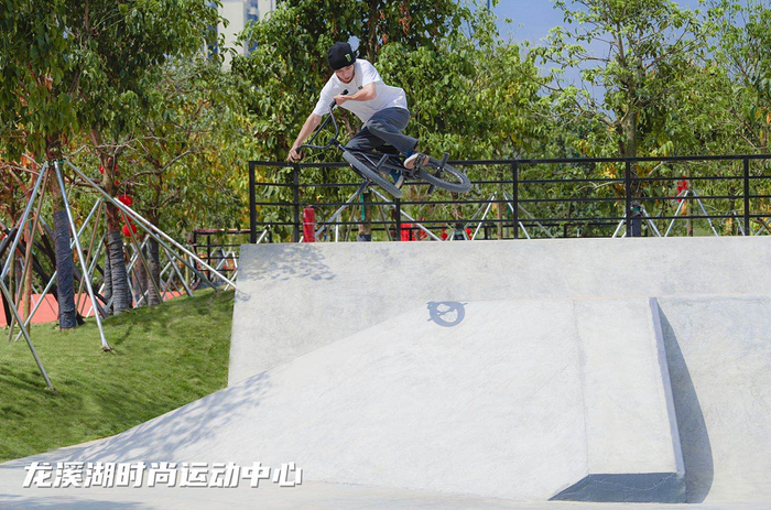 龙溪湖时尚运动中心是依托碧道建设的我市首个复合型极限运动场地,分为极限运动、传统运动、滨湖休闲等6大功能区,最吸引眼球的当属极限运动区,有橙、黄、蓝、黑等颜色各异的“S”形弯道、波浪形坡道,为竞技单车泵道,适合小轮车、轮滑、滑板等项目,规模排在全国前列,3岁以上的初学者都能玩。