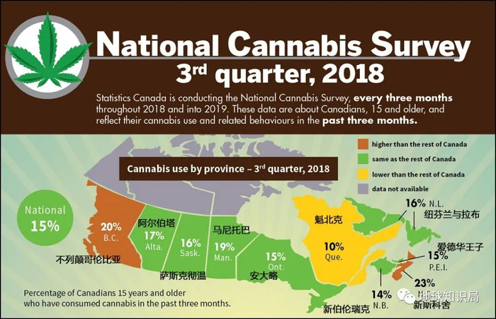 2018年加拿大各省15岁以上服用大麻的人群比例▼