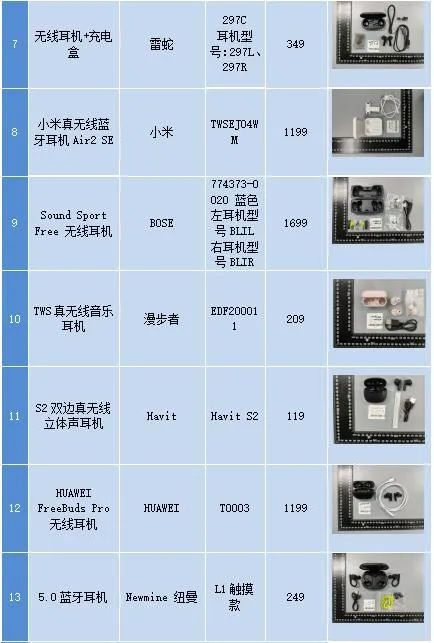 本次比较试验样品选择消费者关注度高、销量好的蓝牙耳机,品牌包括华为、OPPO、小米、SONY、森海塞尔、BOSE、苹果、Jabra等。