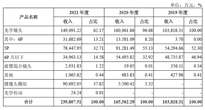 受消费电子等下游市场需求下滑,诚瑞光学的光学镜头业务营收2021年同比下滑6.9%。而摄像头模组业务营收实现9.07亿元,同比增长15.5倍,最终助推诚瑞光学2021年营收同比增长44.8%。